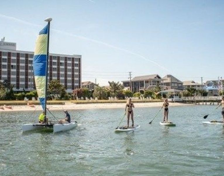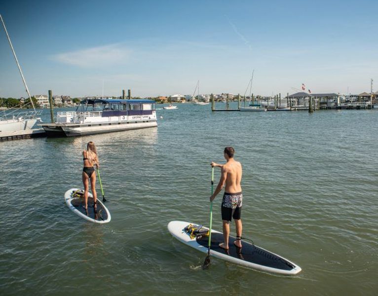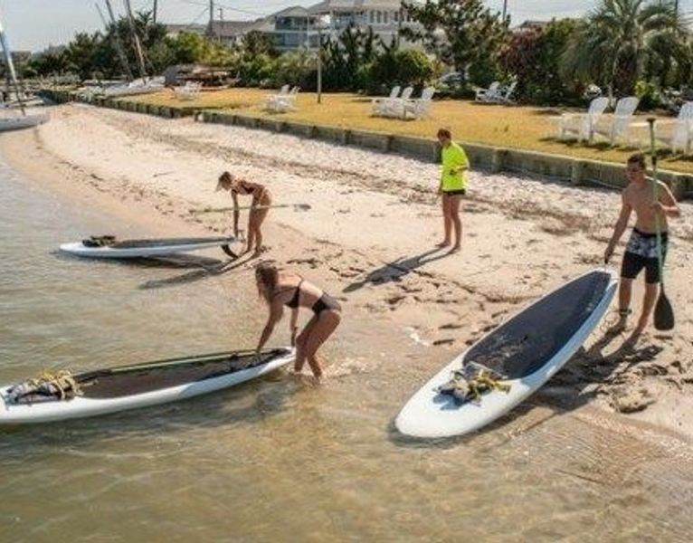 Arrive at the Blockade Runner paddling cove and check in for your SUP rental.